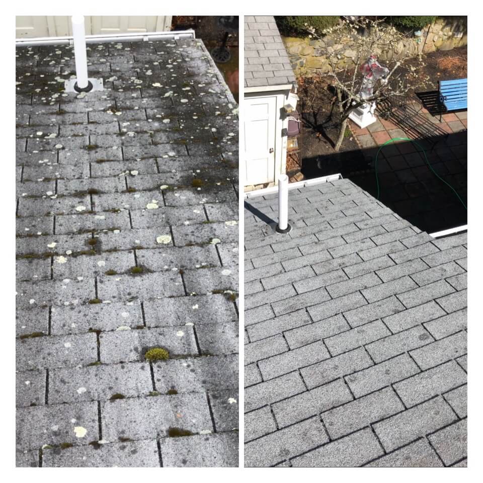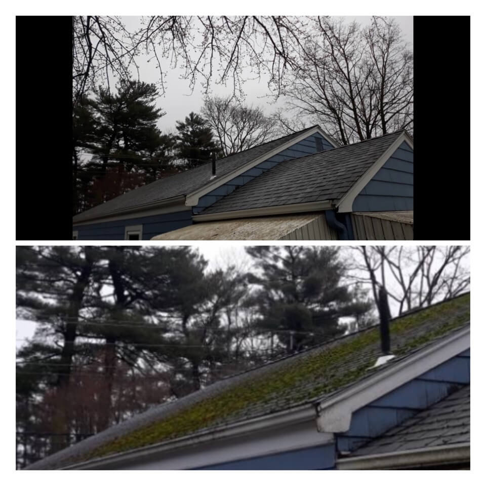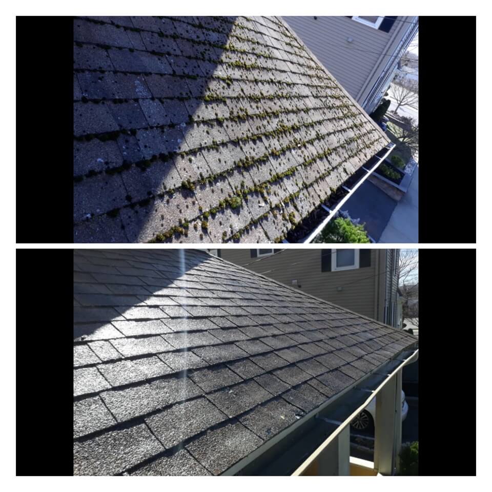 HiCleaners is the most experienced company in Quincy, MA that deals with roof washing and roof soft washing. All of our employees are trained to recognize precise solution mixing ratios to provide you with the safest and most effective soft washing service. Roofs are a commonly neglected part of a house due to the fact that most people don’t have ladders to access it, so it is very easy to just leave it alone and forget about problems that may start to arise. Just like many home owners, discoloration and small bits of moss on a roof can be overlooked because of the misconception that it is just aesthetic. However, it isn’t just aesthetic, the moss slowly lifts the granules off the shingles which in turn shorten the life of the shingle. The moss also spreads, just like any bacteria if it is left alone for too long, it can quickly become a problem that spirals out of control. Call HiCleaners for a free quote, we only use the most advanced eco-friendly solutions and equipment to make sure the job is done right, for the safety of the employees, your plants, grass, pets, and children.