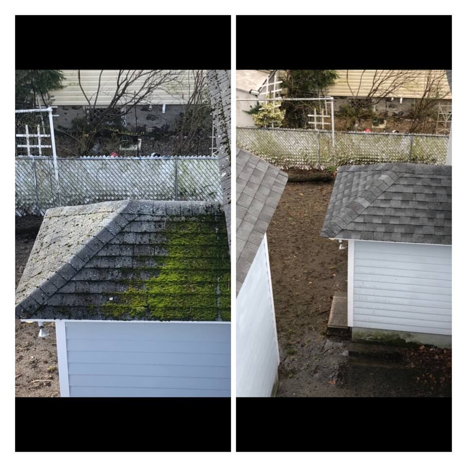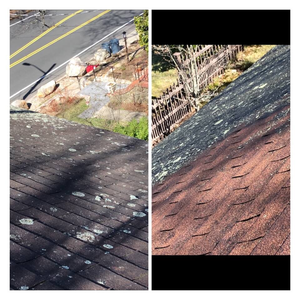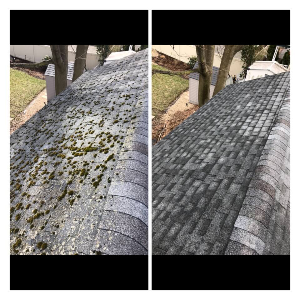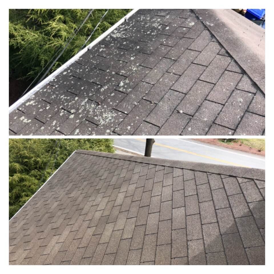 HiCleaners is the most experienced company in Quincy, MA that deals with roof washing and roof soft washing. All of our employees are trained to recognize precise solution mixing ratios to provide you with the safest and most effective soft washing service. Roofs are a commonly neglected part of a house due to the fact that most people don’t have ladders to access it, so it is very easy to just leave it alone and forget about problems that may start to arise. Just like many home owners, discoloration and small bits of moss on a roof can be overlooked because of the misconception that it is just aesthetic. However, it isn’t just aesthetic, the moss slowly lifts the granules off the shingles which in turn shorten the life of the shingle. The moss also spreads, just like any bacteria if it is left alone for too long, it can quickly become a problem that spirals out of control. Call HiCleaners for a free quote, we only use the most advanced eco-friendly solutions and equipment to make sure the job is done right, for the safety of the employees, your plants, grass, pets, and children.